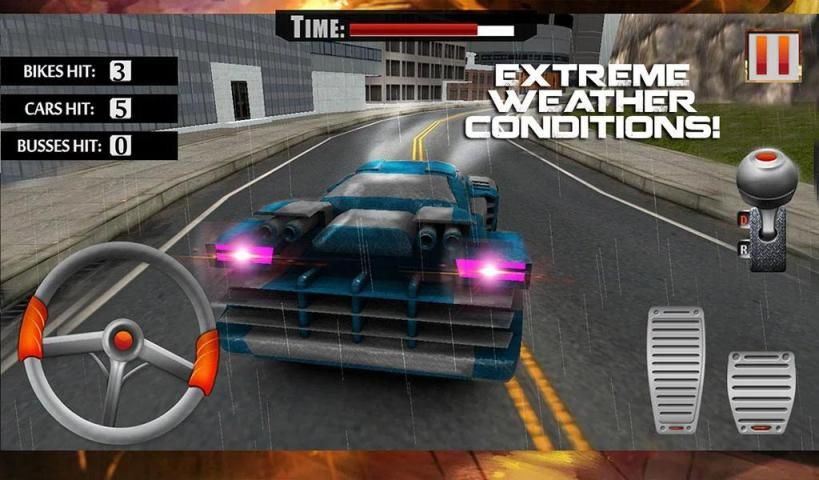 Smash into heavy traffic and destroy bikes, death race cars and schoolbus. Jump and drift on road side ramps. Crush most wanted enemies in the city to earn bounty. Perform lethal burnouts, drifting and car stunts on asphalt roads in death racing game. Get rid of suburban life and experience endless fun playing ultimate car crash racing game.