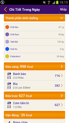 - Theo dõi lượng Kcal nạp vào cơ thể từ thực phẩm.