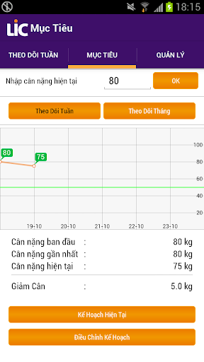 - Cập nhật cân nặng và theo dõi tăng/giảm cân trong suốt kế hoạch đề ra.
