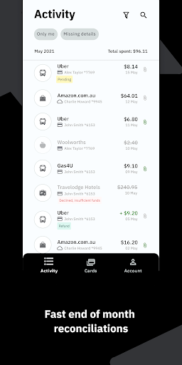 एनएबी व्यय नियंत्रण, एक व्यय प्रबंधन समाधान जो आपके एनएबी बिजनेस क्रेडिट कार्ड (एनएबी क्रय और कॉर्पोरेट कार्ड भी समर्थित हैं) के लिए डिज़ाइन किया गया है।