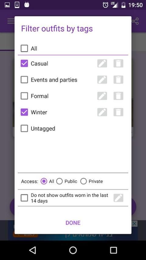 मेरे पहनावा इस तरह के "काम", "सर्दियों", "पार्टियों" आदि के रूप में विशिष्ट घटनाओं के लिए अपनी तस्वीरों को टैग करके, आप जल्दी से अपने संगठनों के माध्यम से ब्राउज़ कर सकते हैं
