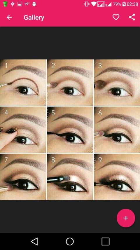 In this application you will find many makeup tutorial eyes makeup pictures which show you easy ways to put on makeup, and especially eye makeup tutorials. The eyes makeup pictures vary from contouring makeup, to how to do your eyeliner, since women's eyes makeup are what attracts people the most. Your eye makeup is the main thing you should start applying (including eye-shadow makeup, eyebrows and eyeliner makeup) after putting on the foundation. This latter, is also available in this application, in order to make of your complexion brighter. You will also find eyes makeup pictures of how to put on lipstick (also, how to make your lips look fuller), how to apply mascara and add volume to your lashes, and many other fabulous eyes makeup pictures, such as how to apply concealer, bronzer and blush makeup.