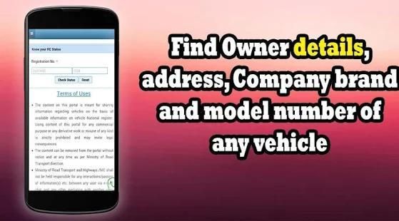 मालिक विवरण, पता, कंपनी ब्रांड और मॉडल संख्या किसी भी वाहन की खोजें