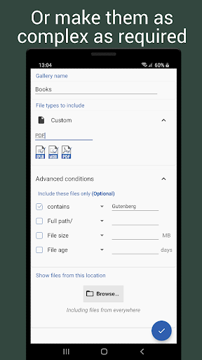सेट करते हैं, ऐप में उन नियमों से मेल खाने वाली फ़ाइलें शामिल होती हैं, जब आवश्यक हो तो सूची अपडेट हो जाती है।