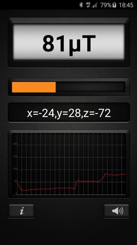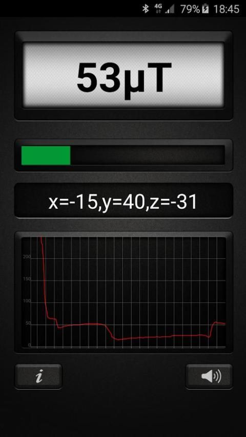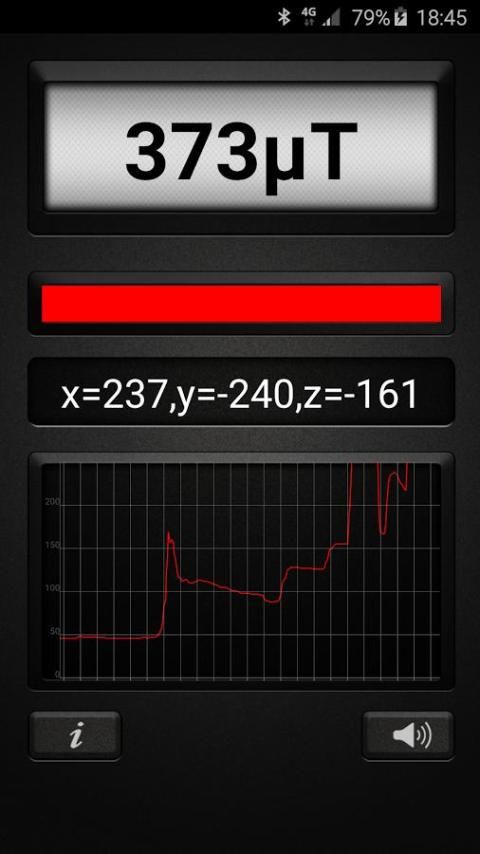 मेटल डिटेक्टर एप्लिकेशन को अपने उपकरणों चुंबकीय संवेदक चुंबकीय क्षेत्र मूल्यों को मापने के लिए उपयोग करता है और एक वास्तविक मेटल डिटेक्टर में किसी भी एंड्रॉयड बदल जाता है। डेटा μT (माइक्रो Testla) में प्रदर्शित किया जाता है। 1μT = 10 मिलीग्राम (मिल्ली गॉस)। प्रकृति में चुंबकीय क्षेत्र के 25 से 65 μT (0.25 करने के लिए 0.65 जी) के बीच है। किसी भी अधिक माप क्षेत्र में धातु का एक संकेत है। जब वहाँ क्षेत्र, चुंबकीय क्षेत्र में बढ़ धातु है। एप्लिकेशन के सर्वश्रेष्ठ ऐसी लोहे के रूप में लौह सामग्री, का पता लगाने के काम करता है और एल्यूमीनियम जैसे गैर लौह सामग्री का पता नहीं लगा सकते हैं। एप्लिकेशन के सर्वश्रेष्ठ 15 सेमी की दूरी तक धातुओं का पता लगाने के काम करता है।