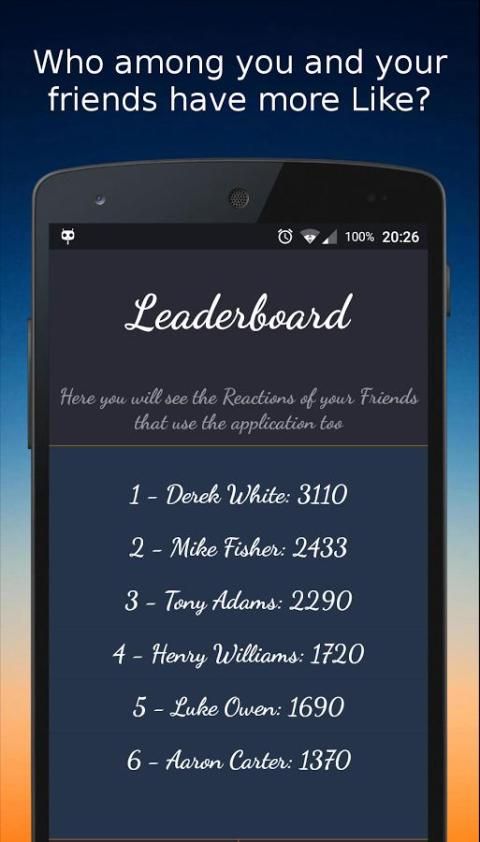 तुम में से कौन है और अपने मित्रों और अधिक की तरह है? आप एक लीडरबोर्ड जहां प्रदर्शन जो आप अधिक की तरह हो जाएगा देखने के लिए सक्षम हो जाएगा!