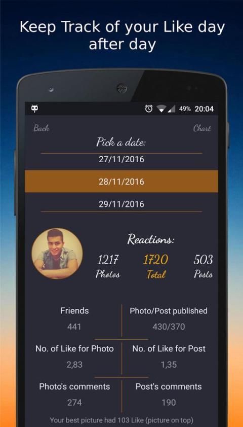 , फोटो प्रकाशित की संख्या, टिप्पणियां प्राप्त किया और कई दूसरों के फोटो के लिए औसत तरह ...: चार्ट और की तरह उपयोगी आँकड़े के माध्यम से अपनी तरह का एक बेहतर समझ है