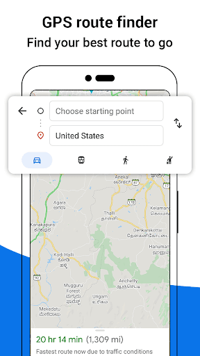 जीपीएस रूट फाइंडर में आपके परिवहन के अनुसार सबसे कम दूरी मार्ग और आसान मार्ग खोजने की सुविधा भी है , आपके वर्तमान स्थान। वांछित स्थान इस एप्लिकेशन का उपयोग करके, जीपीएस मार्ग खोजक पृथ्वी मानचित्र उपग्रह और सड़क दृश्य यात्री के साथ मार्ग खोजने के लिए ग्लोबल पोजिशनिंग सिस्टम का उपयोग करता है। जीपीएस रूट फाइंडर ऐप आपको दुनिया भर में जीपीएस यात्रा करता है और नेविगेट करता है।