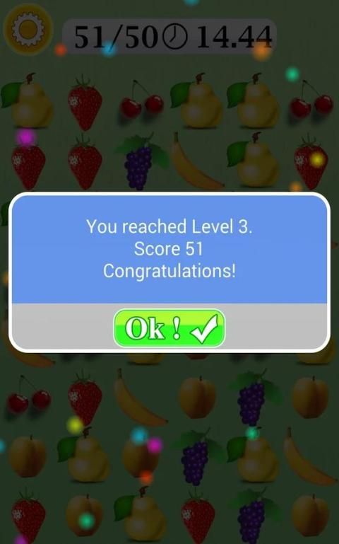 ✓ पहले पॉप फल एक खेल या स्तर की शुरुआत में समय गिनती शुरू होता है।