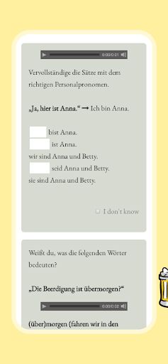 Wunderbla लघु, व्यक्तिगत और मजेदार जर्मन सबक प्रदान करता है।हमारा लक्ष्य: आपकी प्रेरणा, भागीदारी और प्रगति।