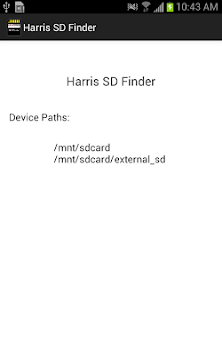 The Harris SD Card Finder scans your device for available external memory. This is particularly useful for developers who want to find the path to the external memory device.