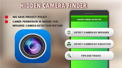 हिडन कैमरा डिटेक्टर- जासूस कैमरा खोजक और गुप्त कैमरा लोकेटर ऐप जिसका उपयोग लीक डेटा, व्यक्तिगत फोटो और वीडियो के एक प्रमुख परिसंचरण मुद्दे को दूर करने के लिए किया जा सकता है जासूस कब्जा कर लिया गया है और विभिन्न छिपे हुए कैमरों, जासूसी कैमरों और अन्य गुप्त कैमरों के अंदर स्थापित किया जा सकता है होटल के कमरे और बदलते कमरे। हमारा हिडन कैमरा डिटेक्टर ऐप एक बेहतरीन छुपा कैमरा डिटेक्टर और जासूस कैमरा खोजक और रूम स्कैनर ऐप है।