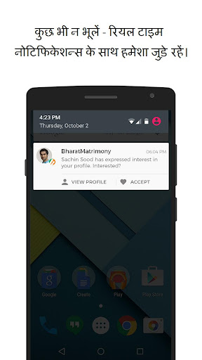 रियल टाइम नोटिफिकेशन के साथ-साथ कहीं भी, कभी भी संभावित जीवन साथी से जुड़े रहने का अवसर पाएं