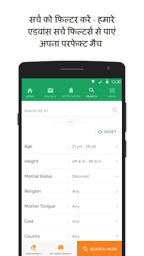 विभिन्न खोज विकल्प से हिंदी भाषी दूल्हा/दुल्हन को खोजें, फिल्टर करें, प्रोफाइल देखें व शॉर्टलिस्ट करें