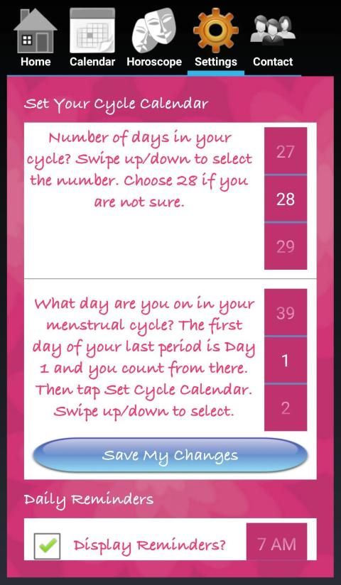 सेटिंग टैब, फिर इनपुट अपने चक्र के बारे में विवरण के एक जोड़े टैप करें। बस!