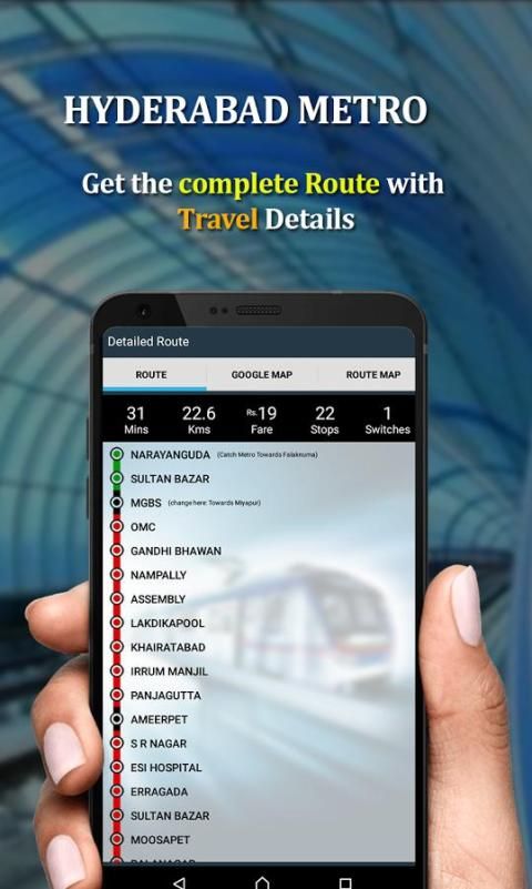 हैदराबाद मेट्रो रेल एप्लिकेशन स्टेशन जानकारी, निकटतम मेट्रो स्टेशन (किराए, दूरी, स्टेशनों की संख्या के साथ) में उपयोगी जानकारी है कि स्टेशनों के बीच ट्रेन की तरह मेट्रो सेवाओं के उपयोग में मदद करता है की बहुत कुछ के साथ मेट्रो सेवाओं के ग्राहकों को प्रदान करता है, हैदराबाद यात्रा गाइड,
