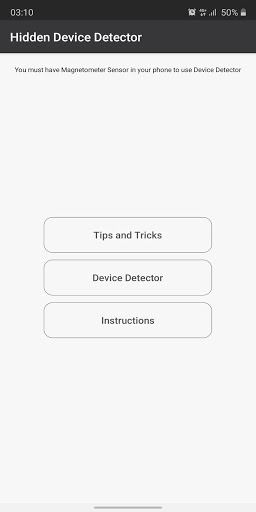 Almost all electronic devices have their own magnetic field. What we are doing in this app is that we are using android internal magnetic field sensor. Whenever the magnetic-field sensor reading go beyond a certain level app tells the user to check the surroundings manually for any devices. Our Tips for hidden camera detection feature can be useful to inspect the suspected area.
