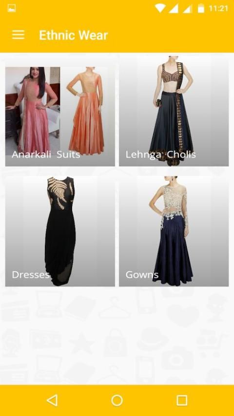 Buy Ethnic wear, Dresses, Tops, Bottom wear, Lehenga choli, saree, anarkali suits, party suits, casual suits, party gowns and what not.