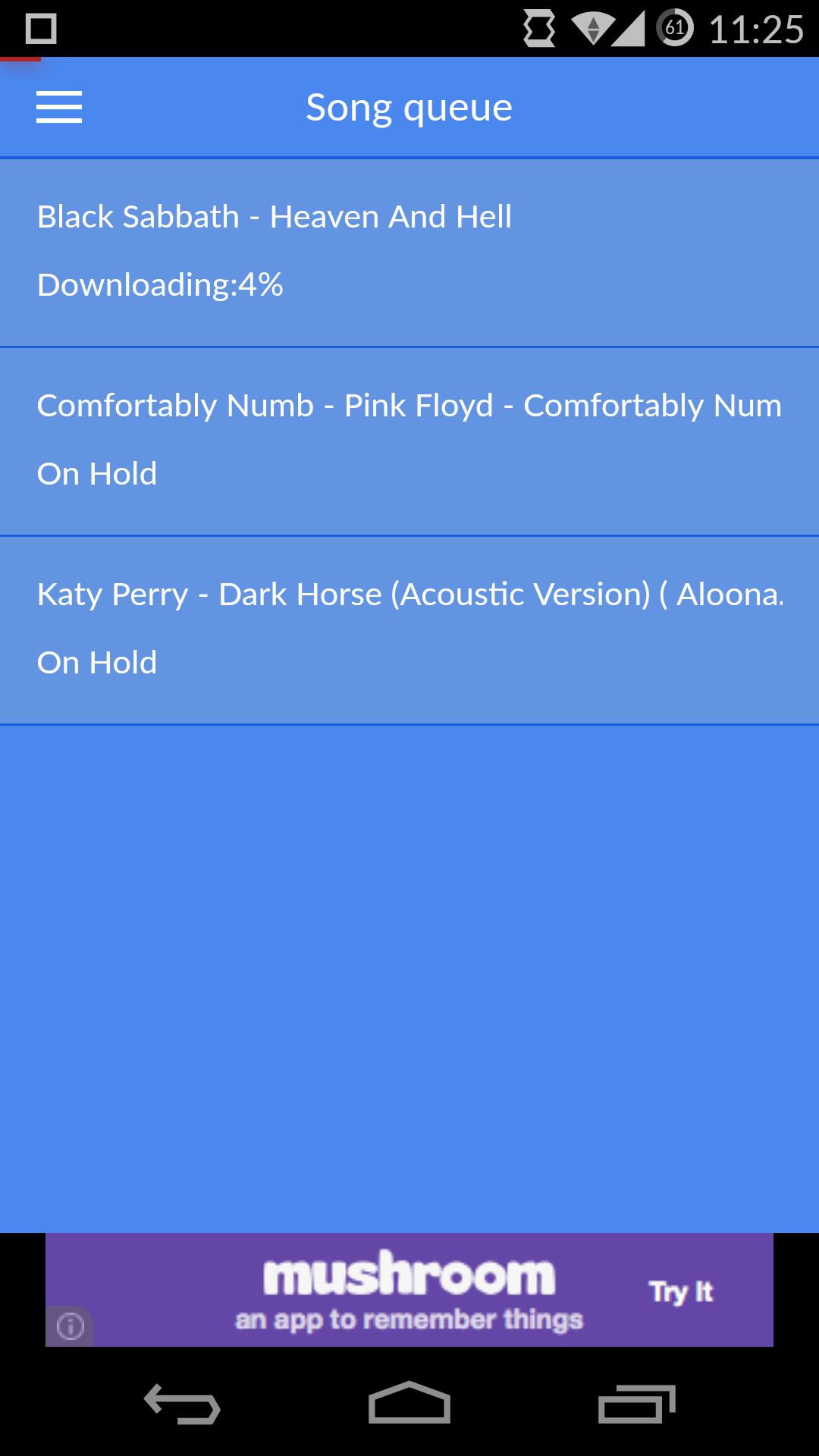 Downloading songs has never been easier! Musica is the simplest way to get hold of your favorite Music. Songs download to your Music directory in your phone and can be played from your favorite music player.