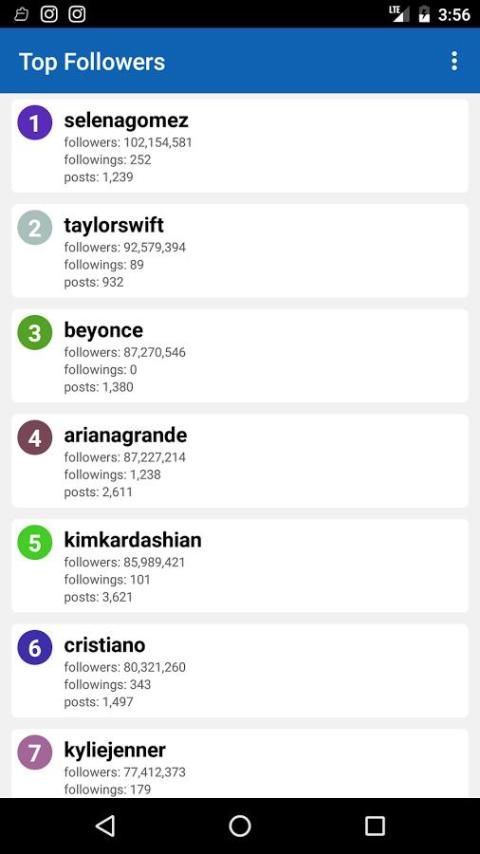 9Apps provide lots of India android apps. 10,000+ users downloaded Top Instagram Accounts latest version on 9Apps for free every week! This is one of my favorite apps. This hot app was released on 2016-10-29. Just use it when absolutely necessary.