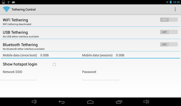 Tethering Control provides you with a single user interface, from where your device's available tethering interfaces can be switched on and off.