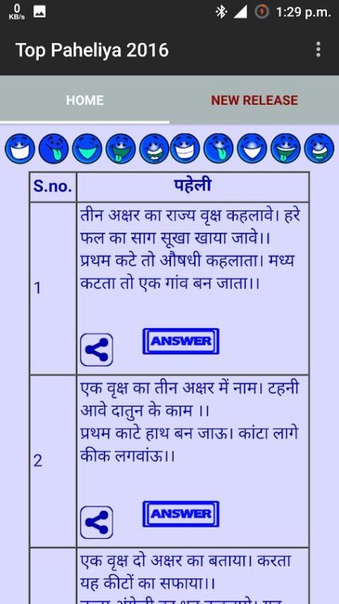 आप पहेलियों (Paheliyan) की संख्या तक पहुँच है और हास्यास्पद anf मन घुमा पहेलियों के साथ अपने दोस्तों विस्मित करने के लिए इस अनुप्रयोग का उपयोग कर सकते हैं।