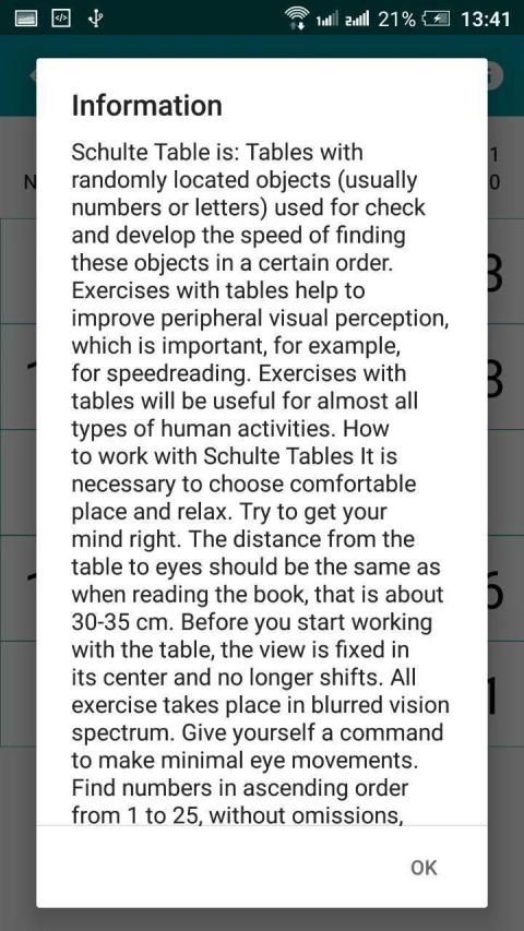 यह एप्लिकेशन स्मृति और मस्तिष्क का सबसे अच्छा प्रशिक्षण है। त्वरित पढ़ने की तकनीक आपको और जानने और तेजी से काम करने की अनुमति देगी। Schulte की टेबल का मुफ्त में उपयोग करें, आंख अभ्यास करें और एकाग्रता पंप करें।