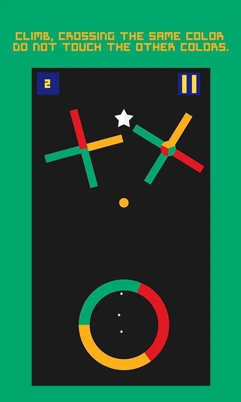 Switch Color damage brain when you are tring to connect the same color point. But the color circles contains color point rotate rapidly and moving the color points is also very difficult. Try to put your color point to go up and achieve the highest score in the color switch free game colors change.