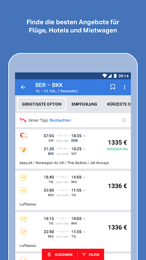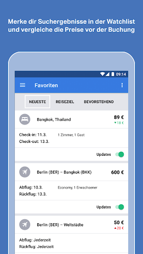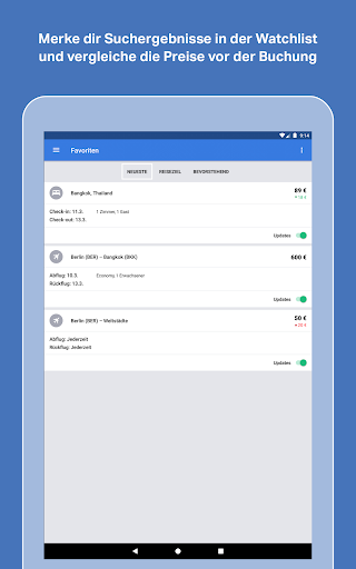 • हम आपके लिए खोज लेते हैं। एक उड़ान या होटल रैंक अलार्म बनाएं और यदि कीमतें बदलती हैं तो हमें अनुभव करें।