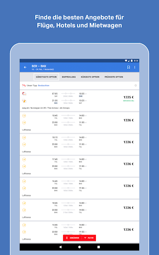 • इंटरमीडिएट स्टॉपर्स, एयरलाइंस, प्रस्थान द्वारा फ़िल्टर खोज परिणाम समय, सुविधाएं और अधिक।