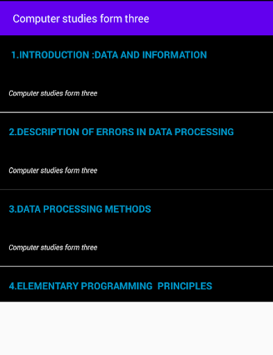 The application contains -Introduction to information -description of errors in data processing -Elementary programming principles -program development -Algorithms -Iterations -System development -Theories