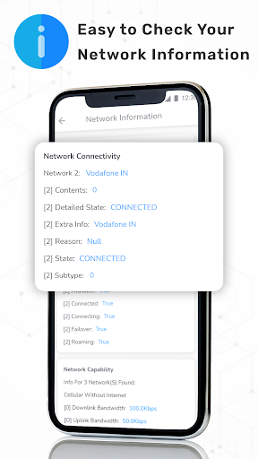 👉 उन्नत नेटवर्क जानकारी जैसे नेटवर्क कनेक्टिविटी, नेटवर्क क्षमता & amp;लिंक गुण जानकारी।