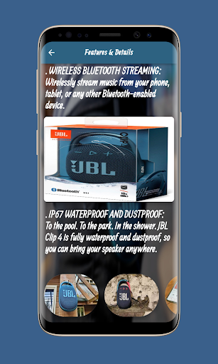 आप अब भी कर सकते हैं, JBL क्लिप 4 गाइड एप्लिकेशन के माध्यम से, JBL क्लिप 4 का उपयोग करने के लिए एक गाइड प्राप्त करें, जिसे आप एप्लिकेशन के माध्यम से देख सकते हैं, जो आपको स्पष्ट और आसान तरीके से प्रदान किया जाता हैइसके माध्यम से जानें कि जेबीएल क्लिप का उपयोग कैसे करें। आप उत्पाद का विवरण भी देख सकते हैं, जो कि यह है कि यह जेबीएल क्लिप 4 की सभी विशेषताओं और लाभों को प्रदर्शित करता है जो इसे एक ही क्षेत्र में अन्य समान उत्पादों से अलग बनाते हैं।इन विशेषताओं में से 10 घंटे खेलने के 10 घंटे हैं: डॉन ' बैटरी को चार्ज करने जैसी छोटी चीजों के बारे में चिंता करते हैं।क्लिप 4 आपको एक ही चार्ज पर 10 घंटे तक खेलने का समय देता है।