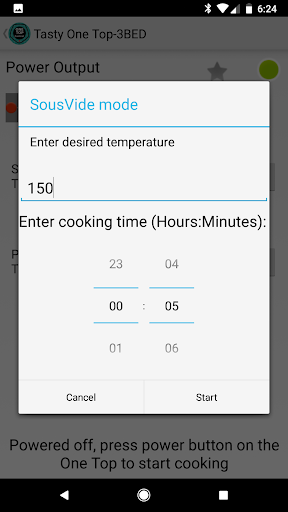 जब आप ध्यान दें कि आप एक वांछित तापमान सेट करें आपको अपने काम को शुरू करने के लिए एक शीर्ष पर पावर बटन दबाए जाने की आवश्यकता है (आपको एक संवाद संकेत मिलेगा, एक मोड को मैन्युअल बटन के बिना एक शीर्ष पर चालू करने का कोई तरीका नहीं है, दुर्भाग्य से एक मोड बदलने के बाद दबाएं)। आपको पता चलेगा कि यह काम कर रहा है क्योंकि पावर एल ई डी एक दोहराव पैटर्न खेलेंगे।