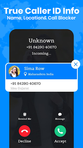 Show True ID Caller name app is the most accurate mobile number locator and very easy to use caller ID Location tracker app which can help you identify the incoming calls instantly in your contact list. Show Caller ID mobile number tracker app not only identify most of unknown calls but show regions on incoming calls, so you can see true caller ID and names of people who are calling.