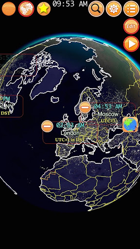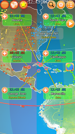 क्या समय है? दुनिया भर के शहर टाइमज़ोन द्वारा विभिन्न घड़ी समय का उपयोग करते हैं। जब न्यूयॉर्क डेलाइट है, लेकिन टोक्यो रात में है। यह ऐप ग्लोब-अर्थ और उनके घड़ियों पर शहरों को दिखाता है। डीएसटी (डेलाइट सेविंग टाइम) राज्य को कुछ शहरों के लिए घड़ी में समायोजित किया जाएगा।