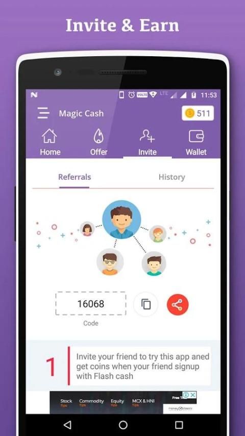 मित्रों और परिवार के एप्लिकेशन डाउनलोड करने के लिए आमंत्रित करें और प्रस्ताव नकद अर्जित करने के लिए पूरा
