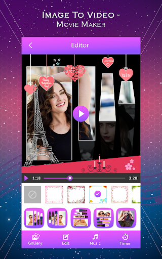 यह एप्लिकेशन आप अपनी फिल्म को प्यार स्लाइड शो की तरह बना सकते हैं और आप जोड़ सकते हैं, संपादित कर सकते हैं एनीमेशन और तस्वीरें हटाएं और अपनी छवियों को प्रभावित करने वाली सर्वोत्तम कार्यक्षमता को लागू करें। अपनी तस्वीरों पर समय अवधि, संगीत और फ़्रेमिंग जैसी सर्वोत्तम कार्यक्षमता, सोशल मीडिया ऐप के माध्यम से संगीत वीडियो को सहेजें और साझा करें।