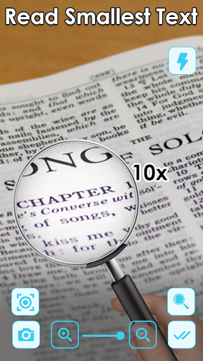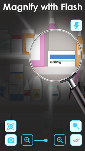इस आवर्धक ग्लास ऐप में, आपके पास ज़ूम इन और ज़ूम आउट फ़ंक्शन के लिए समर्पित बटन हैं। इसके अलावा ज़ूम कार्यक्षमता को नियंत्रित करने के लिए स्लाइड बार भी है। जो सभी प्रकार के उपयोगकर्ताओं के लिए शांत और आरामदायक है। फ्लैश लाइट और फ्रीज फ़ंक्शन भी है जो आपको लाइव पूर्वावलोकन को फ्रीज करने में मदद करेगा ताकि आप आसानी से अपने कैमरे के दृश्य में सभी टेक्स्ट पढ़ सकें।