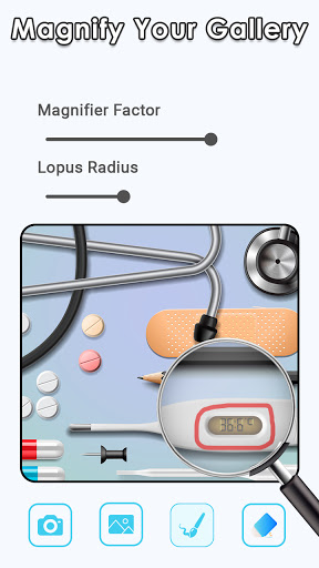 फ्लैश लाइट के साथ आवर्धक ग्लास आपको लाइव कैमरा व्यू में कई चीजों को ज़ूम करने में भी मदद करेगा और साथ ही साथ आपकी गैलरी से अपलोड की गई एक छवि भी मदद करेगा। यह आपको छोटे पाठ और वस्तुओं को पढ़ने और बढ़ाने में मदद करेगा। आवर्धक ग्लास एप्लिकेशन का उपयोग करने के लिए स्वतंत्र है। इसे विशेष प्रशिक्षण या ट्यूटोरियल की आवश्यकता है बस डाउनलोड करें और उपयोग करें। सबसे अच्छा ऐप में से एक जो आपको छोटे पाठ और वस्तुओं को बढ़ाने में मदद करेगा।