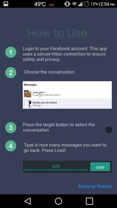 एप्लिकेशन में प्रवेश करने के बिना अपने संदेशों को लोड नहीं कर सकते हैं। हालांकि, प्रवेश प्रक्रिया पूरी तरह से सुरक्षित है और आपकी जानकारी में से कोई भी बचाया / किसी भी Facebook.com के अलावा अन्य सर्वर से फैलता है।
