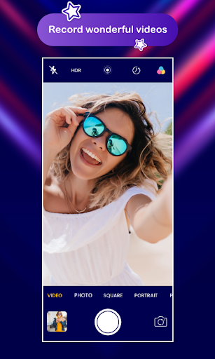 In this app 3 kinds of shooting modes are currently available: Camera, video, and square.