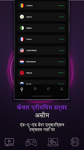 कोई गति या ट्रैफ़िक सीमा नहीं: जब तक आप चाहें, देखें, डाउनलोड करें, खेलें, भेजें और इसे उच्चतम गति पर करें। शीर्ष स्थानों में सर्वरों का बड़ा संग्रह आपको उन संसाधनों तक पहुँचने की अनुमति देता है जो किसी विशेष देश में उपलब्ध नहीं हो सकते हैं या आपके कनेक्शन को गति देते हैं।