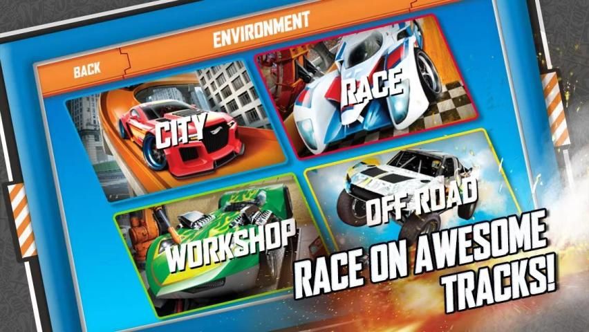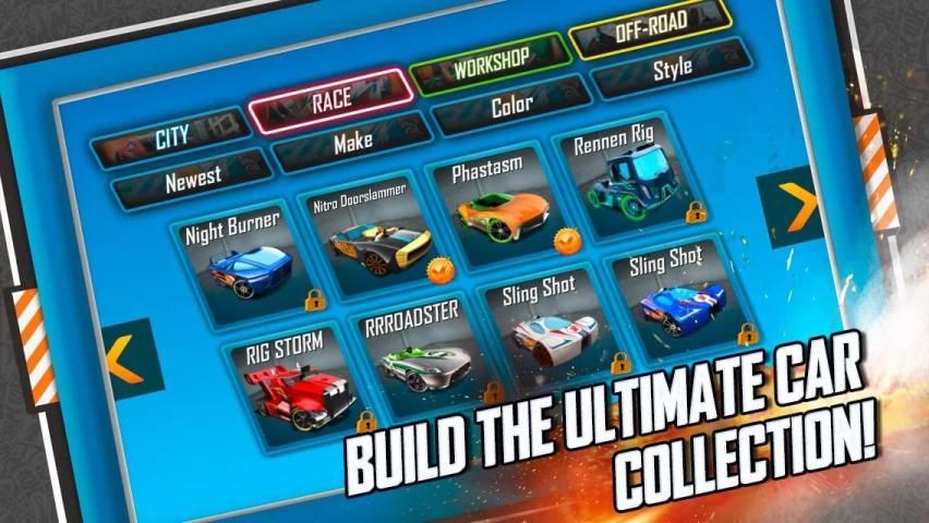 Master the hairpin turns in City, go full throttle in Race, dust the competition in Off Road and burn up the road in Workshop.