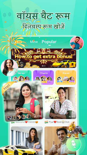 हापी में आप विभिन्न प्रकार के कमरे बना सकते हैं, जैसे खेल, प्यार, डेटिंग, गायन आदि, जिससे एक बहुत ही आराम और सुखद माहौल बन सकता है;