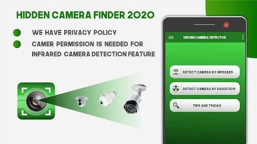 हिडन कैमरा फाइंडर ऐप आपको सभी प्रकार के छिपे हुए कैमरों और सीसीटीवी कैमरों से अपनी गोपनीयता को सुरक्षित करने में मदद करेगा।यह छिपा हुआ कैमरा डिटेक्टर इसका उपयोग करने के लिए बहुत है और सबसे महत्वपूर्ण बात यह है कि आप इसे किसी भी तरह से उपयोग कर सकते हैं जहां वाईफाई कनेक्शन के बिना, बस छिपे हुए कैमरा डिटेक्टर ऐप को खोलें और जहां आपको संदेह है कि यह ऐप स्वचालित रूप से छोटे कैमरे को ढूंढेगा और बीपिंग शुरू करेगा।