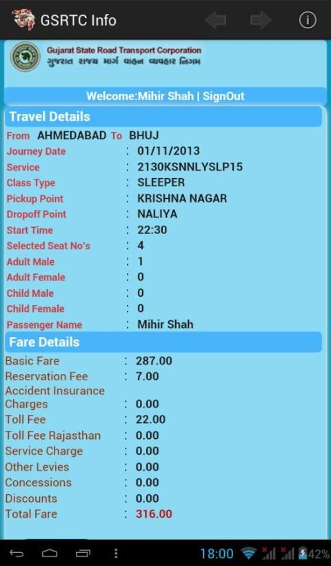 अब बस समय तालिका, किराए और इस अनुप्रयोग का उपयोग कर GSRTC के बारे में अन्य जानकारी मिलती है. इसके अलावा, आप भी यहां टिकट बुक करा सकते हैं.
