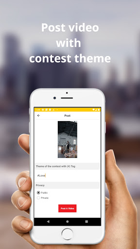 एक छोटा वीडियो अपलोड करें: अपने फोन पर एक वीडियो अपलोड करें और कस्टम ऑडियो जोड़ें, 17 सेकंड के भीतर एक कच्चा वीडियो अपलोड करें, अपनी वीडियो गोपनीयता सार्वजनिक या निजी का चयन करें और अपना विवरण जोड़ें या आप प्रतियोगिता थीम में # टैग भी जोड़ सकते हैं।