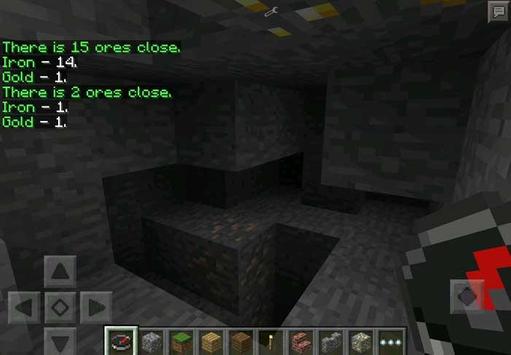 The Miners Detector Mod for Minecraft Pocket (MCPE) adds an extremely useful (and not overpowered) ore detection tool also known as the compass. A good thing to make it not too overpowered is that you are required to be within a reach of 4 blocks of a valuable ore to be able to detect it.