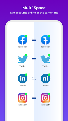 Multi Space is designed for users who log in more than 2 accounts (multiple accounts) of the same app on ONE PHONE, you can get dual WhatsApp and double Facebook easily.